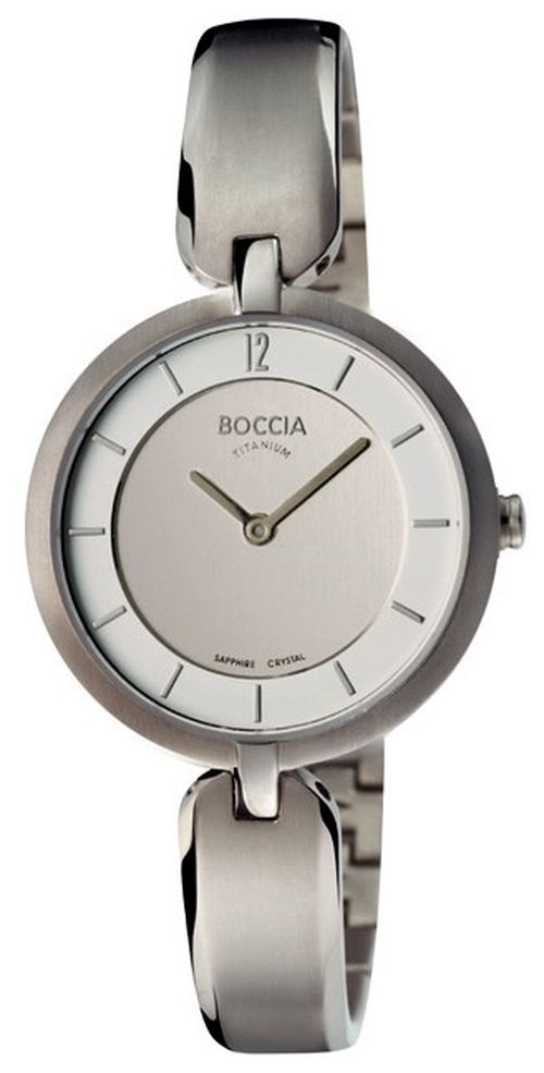 Značka: BOCCIA TITANIUM | Model: 3164-01 | Barva: stříbrná | Barva pouzdra: stříbrná | Materiál pouzdra: titan | Napájení: baterie | Materiál řemínku: titan | Průměr: 30 mm | Tloušťka: 6 mm | Vodotěsnost: 50M/5ATM | Sklo: safírové | Tvar: kulaté | Typ zapínání: šperkové zapínání | Určení: dámské | Typ produktu: hodinky | Typ: ručičkové | Šířka řemínku: 9 mm