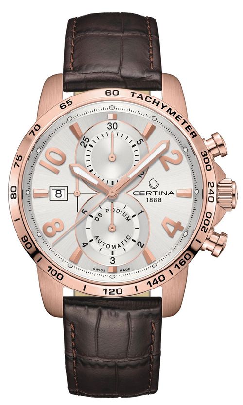 Značka: CERTINA | Kolekce: DS PODIUM | Model: 0344273603700 | Barva: hnědá | Barva pouzdra: růžová zlatá | Materiál pouzdra: ocel | Napájení: automaticky natahované | Materiál řemínku: kůže | Funkce: Datum - den v měsíci | Funkce: stopky | Funkce: Super-LumiNova | Vodotěsnost: 100M/10ATM | Sklo: safírové | Tvar: kulaté | Číslice na ciferníku: arabské | Číslice na ciferníku: indexy | Určení: pánské | Typ produktu: hodinky | Typ: ručičkové | Šířka řemínku: 21 | Průměr: 44 | Tloušťka: 14,80 | Strojek: C01.211, Nivachron