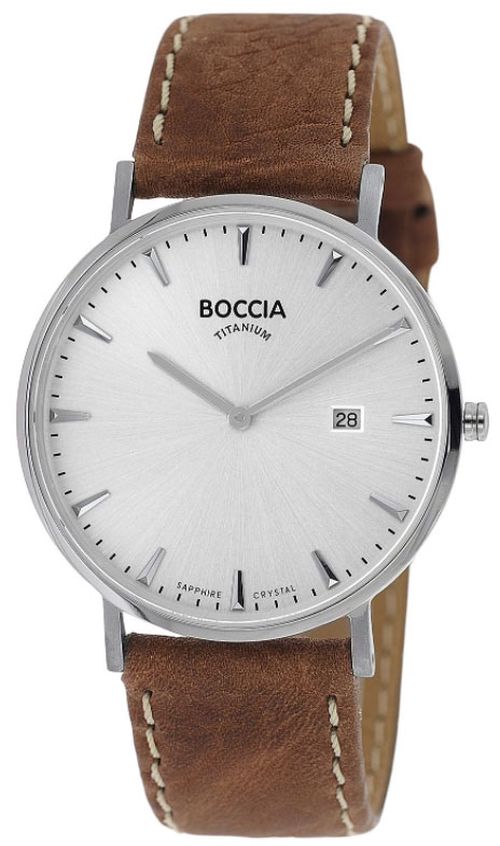Značka: BOCCIA TITANIUM | Model: 3648-01 | Barva: hnědá | Barva pouzdra: stříbrná | Materiál pouzdra: titan | Napájení: baterie | Materiál řemínku: kůže | Funkce: Datum - den v měsíci | Průměr: 39 | Tloušťka: 7 | Vodotěsnost: 30M/3ATM | Sklo: safírové | Tvar: kulaté | Typ zapínání: standardní zapínání | Číslice na ciferníku: indexy | Určení: pánské | Typ produktu: hodinky | Typ: ručičkové | Šířka řemínku: 20