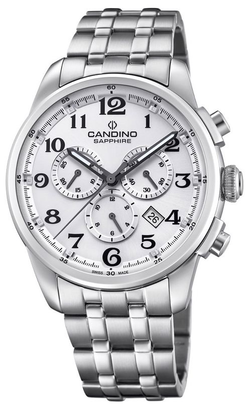 Značka: CANDINO | Kolekce: GENTS SPORT ELEGANCE | Model: C4698/1 | Barva: stříbrná | Barva pouzdra: stříbrná | Materiál pouzdra: ocel | Napájení: baterie | Materiál řemínku: ocel | Funkce: Datum - den v měsíci | Funkce: stopky 1/1 sekundy - 12 hodin | Průměr: 44 mm | Vodotěsnost: 100M/10ATM | Sklo: safírové | Tvar: kulaté | Typ zapínání: překlápěcí přezka | Určení: pánské | Typ produktu: hodinky | Typ: ručičkové | Šířka řemínku: 22 mm