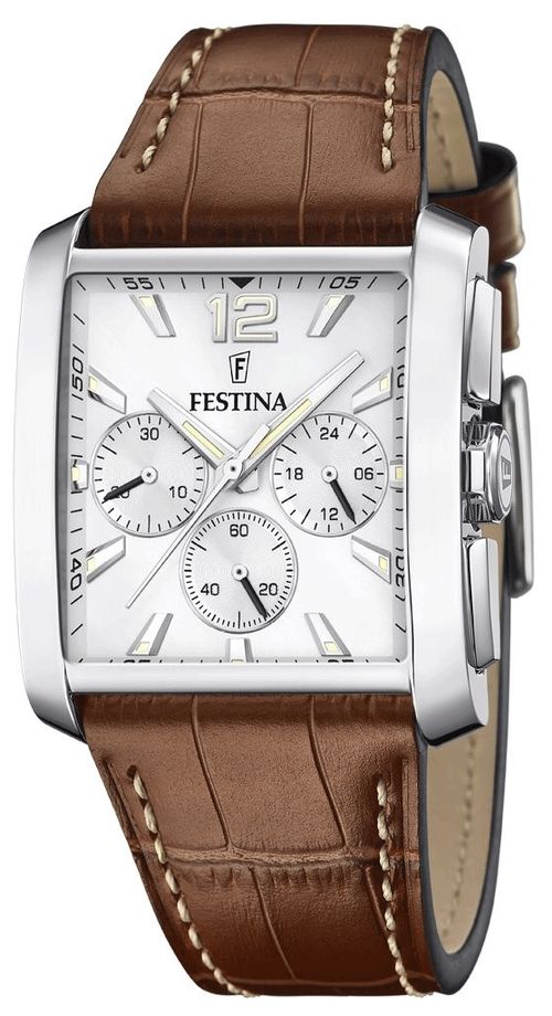 Značka: FESTINA | Kolekce: TIMELESS CHRONOGRAPH | Model: 20636/1 | Záruka: 2 roky | Barva: hnědá | Barva pouzdra: stříbrná | Materiál pouzdra: ocel | Napájení: baterie | Materiál řemínku: kůže | Funkce: stopky 1/1 sekundy - 30 minut | Vodotěsnost: 50M/5ATM | Sklo: minerální | Tvar: hranaté | Číslice na ciferníku: indexy | Určení: pánské | Typ produktu: hodinky | Typ: ručičkové | Šířka řemínku: 29-22 | Tloušťka: 12,5 | Strojek: MJS20-H1 | Šířka pouzdra: 38