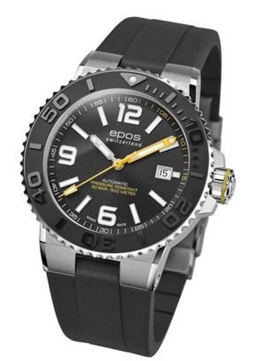 Pánské hodinky Epos Sportive 3441.131.20.55.55 jsou vyvedeny v oblíbeném potápěčském stylu. Celočerné provedení doplňují atraktivní žluté detaily. O pohon se stará automatický strojek ETA 2824... Pánské hodinky Epos Sportive 3441.131.20.55.55 jsou vyvedeny v oblíbeném potápěčském stylu. Celočerné provedení doplňují atraktivní žluté detaily. O pohon se stará automatický strojek ETA 2824. Model Epos Sportive 3441.131.20.55.55 je osazen švýcarským automatickým strojem ETA 2824 s rezervou chodu až 38 hodin.…