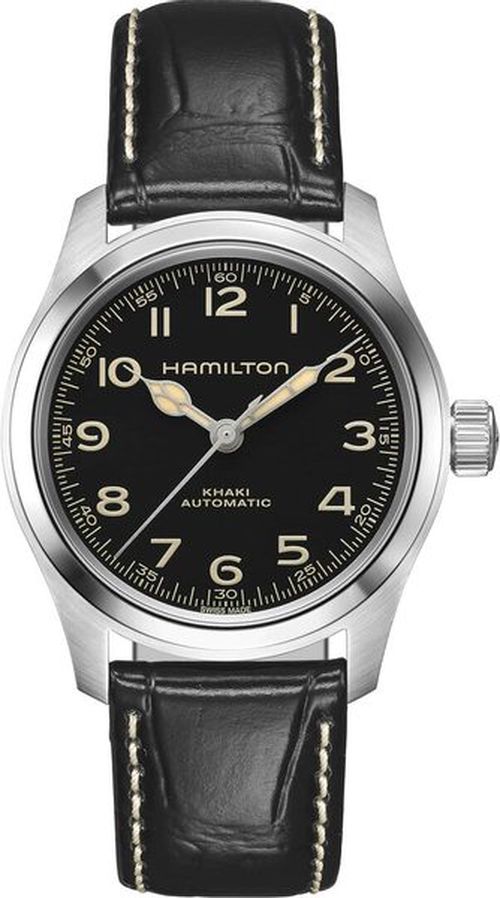 Khaki Field Murph Auto 38mm jsou tady! Jedny z nejslavnějších hodinek stříbrného plátna známé mezi fanoušky jako 'The Murph' jsou nyní nově vyráběny v kompaktním 38mm pouzdru z nerezové oceli. Díky ultra čitelnému černému ciferníku, béžovým ručkám s povrchovou úpravou Super-LumiNova® ve vintage stylu a černému koženému řemínku odráží klíčové estetické kódy svého 42mm předchůdce. Tento Khaki Field Murph Auto model poháněný automatickým strojkem H-10 s 80 hodinovou rezervou chodu chytí za srdce ty, kteří…