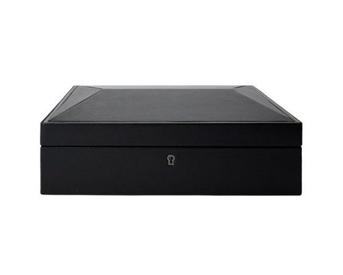 Elegantní box Wolf British Racing Black 793202 pro 15 kusů hodinek s úložným prostorem pro manžetové knoflíčky, prsteny či jiné cennosti ve spodní části boxu. Box je vyroben z velmi kvalitní veganské kůže a opatřený zámkem pro větší bezpečí vašich hodinek. Nechybí ani polštářek s USB vstupem pro chytré hodinky.